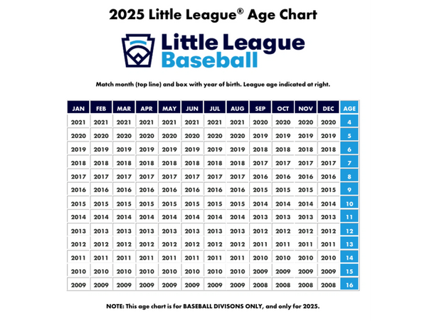 Yreka Little League is working hard behind the scenes to gear up for the 2025 Baseball season! Here is the 2025 Little League Age Chart. If you have any questions please feel free to reach out to a board member or our email yrekalittleleague@gmail.com.